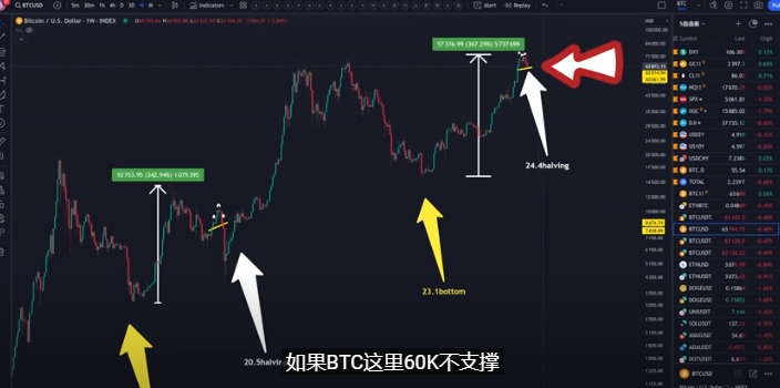在今天的比特币行情中,我想分享我最担心的事情。昨天比特币再次下跌,多头利润一直在回撤,这使我感到有些沮丧。我希望我们可以讨论一下当前的中东局势,或者是俄乌之间的紧张局势。这种情况很像2020年疫情爆发之前的氛围。如果比特币无法在60,000美元的水平上得到支撑,那么它可能会跌到哪里呢?考虑到还有一些空头利润在等待时机反手做多,这个问题变得更加复杂。