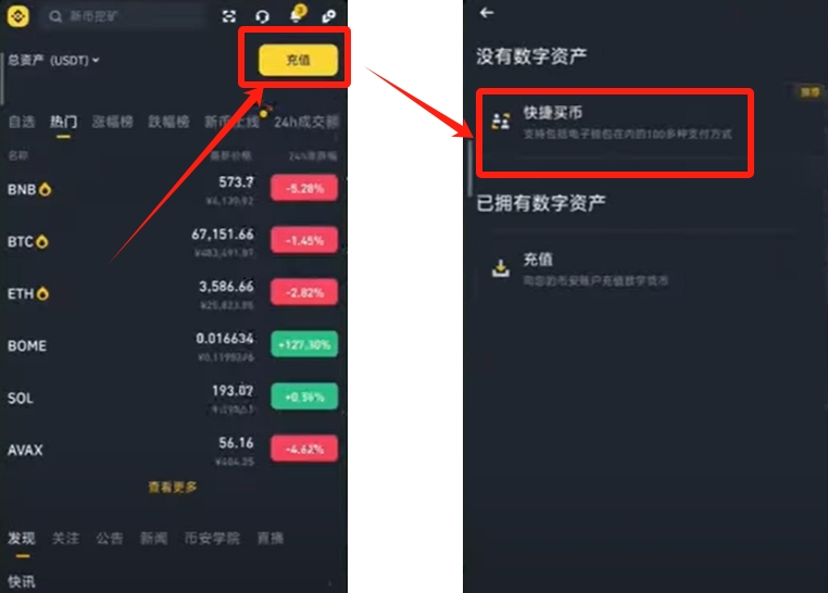 在币安入金很多新手朋友们都不会操作,现在本文将教会大家如何在币安入金,操作过程全程图文展示非常的简单,认真看一遍后就会操作了。