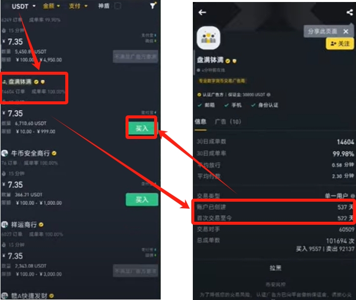 在自选区,你可以通过筛选条件来寻找合适的交易对手。我通常倾向于选择P2P模式,并自己挑选商家,因为这样可以更加确保资金的安全。在挑选商家时,我会关注他们的成单率和注册时间,这些信息可以在商家详情中查看。同时,为了避免潜在的风险,我通常会避开价格过低或过高的商家。