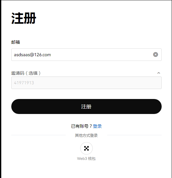 - 输入您的邮箱地址,并填写邀请码:41971913,以享受手续费优惠,然后点击“注册”按钮。